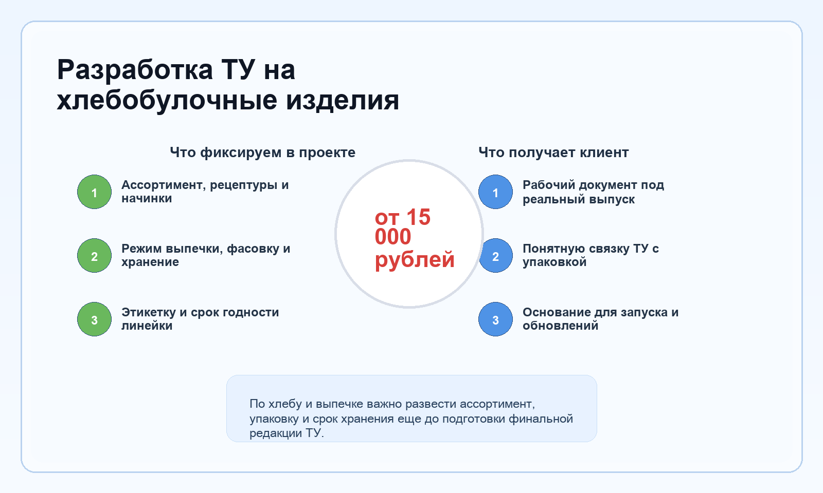 • ТУ под конкретную хлебобулочную линейку или разумно собранную группу изделий;